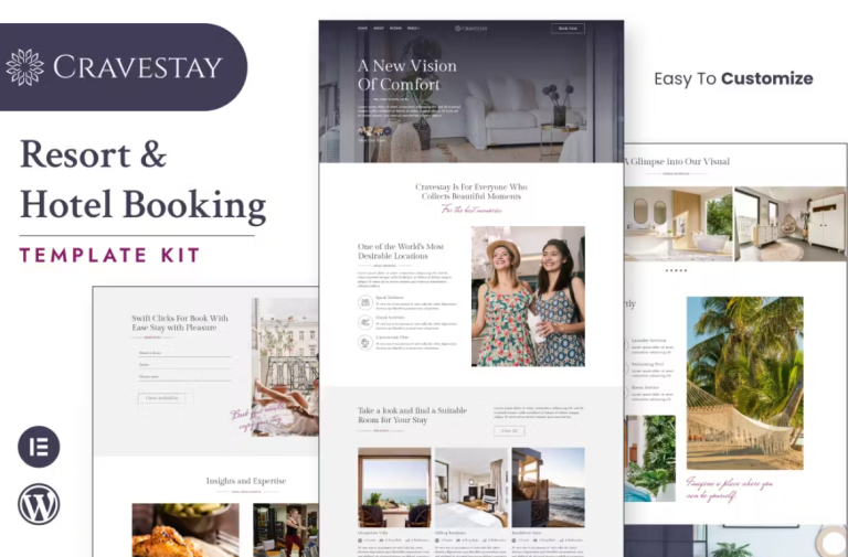 Cravestay es un kit de plantillas de Elementor diseñado específicamente para crear sitios web de negocios de bnb y hoteles en WordPress. Cravestay ofrece una mezcla perfecta de elegancia y funcionalidad, garantizando una presencia online cautivadora para tu hotel. Con su diseño moderno, navegación intuitiva y diseños personalizables, Cravestay hace que sea fácil mostrar tus habitaciones, servicios y comodidades. Impulsa las reservas con formularios de reserva integrados, destaca las opiniones de los huéspedes y comparte impresionantes galerías de fotos. Cravestay es totalmente receptivo, garantizando una experiencia impecable en cualquier dispositivo. Eleva el sitio web de tu hotel con Cravestay y proporciona a los huéspedes una primera impresión inolvidable.