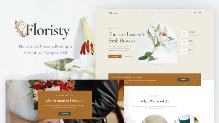 Florística: Plantilla de Elementor para Floristería y Boutique de Flores hecha específicamente para el sitio web de floristería y boutique de flores. Está enfocada en servicios de floristería, diseño de ramos, decoración de flores para eventos y empresa de decoración de ceremonias. Florística tiene un diseño simple, moderno y limpio con un diseño 100% responsive, muy fácil de personalizar y puede ser utilizado por cualquier persona sin necesidad de entender de codificación.