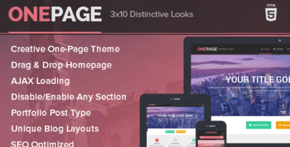 Onepage es un tema de WordPress de una sola página imprescindible. Con una creativa disposición de página de inicio con arrastrar y soltar y diseños de blog únicos, OnePage tiene un diseño receptivo con un código limpio y hecho a mano que carga rápido y está optimizado para SEO. Totalmente personalizable, incluye potentes opciones y características del tema para ayudar a tu sitio.