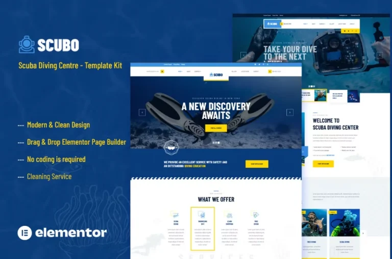 Scubo está especialmente diseñado para todo tipo de buceo, deportes acuáticos, natación, aventuras en el mar, escuelas de buceo, snorkel, viajes, actividades de viaje como senderismo, surf y muchos otros negocios. El Kit de Plantilla de Scubo utiliza el popular plugin constructor de páginas Elementor, esta plantilla es fácilmente personalizable, completamente receptiva y compatible con todos los navegadores y dispositivos modernos.