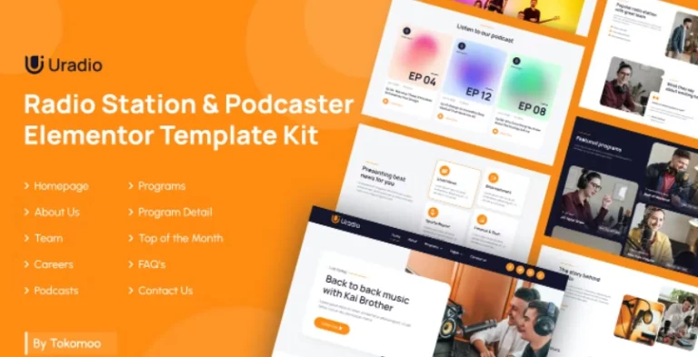 Uradio es un moderno Kit de Plantillas de Elementor que es perfecto para crear un sitio web para Estaciones de Radio, Medios Digitales, Medios de Podcast, Radio por Internet, Servicios de Streaming, Entretenimiento, o sitios web de Video Blog. Esta plantilla tiene un diseño profesional y elegante con un diseño 100% receptivo, listo para retina y muy fácil de personalizar.