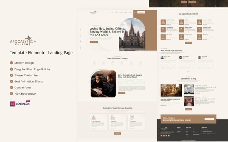 Apocalyptica Church es una hermosa plantilla de página de aterrizaje religiosa cristiana, ideal para servicios de adoración, consejería y exhortación. Ofrece múltiples diseños predefinidos que son claros y profesionales. No se necesita experiencia técnica para crear un nuevo sitio web, lo que facilita la creación y modificación de blogs. Incluye una variedad de imágenes gratuitas, fuentes multilingües y opciones de color. Este diseño es completamente personalizable y responsivo. Hemos creado una estética perfecta utilizando editores visuales de arrastrar y soltar y la tecnología más reciente.