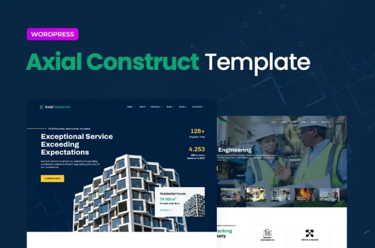 Axial Construct es un Kit de plantillas de Elementor para crear rápidamente y fácilmente un sitio web completo de WordPress para tu negocio de arquitectura, construcción o diseño. Está optimizado para el tema gratuito Hello Elementor pero puede ser usado con la mayoría de los temas que soportan el constructor de páginas Elementor.