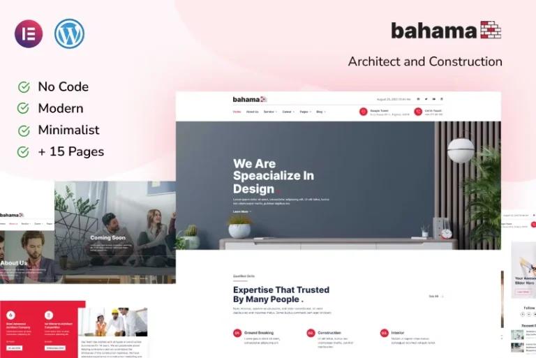 Bahama – Contractor & Architect Elementor Template Kit es un kit de plantillas de Elementor para crear rápidamente un sitio web para tu negocio de forma sencilla utilizando el plugin Elementor Page Builder para WordPress. Este kit ha sido optimizado para su uso con el tema gratuito Hello Elementor pero también puede ser usado con la mayoría de los temas compatibles con Elementor.