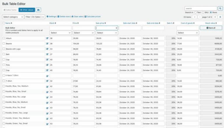 ¿Necesitas una forma sencilla de actualizar los productos en lote? ¿O buscas optimizar la gestión de variaciones y configurar ventas de manera eficiente? Bulk Table Editor for WooCommerce se encarga de estas tareas y más, todo en operaciones en lote sencillas.