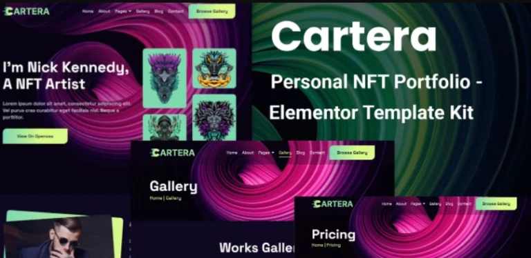 La plantilla Cartera – Personal NFT Portfolio Elementor está perfectamente diseñada para crear sitios web fáciles de usar para clientes valiosos con plantillas web predefinidas. Es totalmente receptiva y se adapta a diferentes pantallas y resoluciones, desde pantallas de escritorio normales hasta tablets, iPhones y dispositivos móviles pequeños. Es súper fácil y no se requiere programación para crear un sitio web completo.