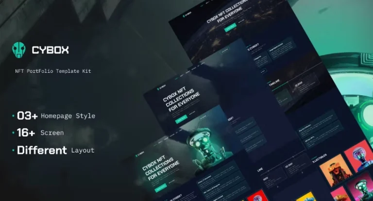 Kit de plantillas Cybox NFT Marketplace Elementor Pro para Blockchain NFT, Coleccionables, Cripto, Arte Cripto, Activos Cripto, Criptoarte, Digital y mucho más. El Kit de plantillas Cybox utiliza el plugin Elementor Pro para constructor de páginas, estas plantillas son fácilmente personalizables, totalmente responsivas y compatibles con todos los navegadores modernos y dispositivos.