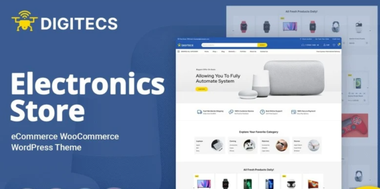 No te pierdas el potencial de Digitecs para ayudarte a alcanzar y conectar con tu cliente objetivo a través de tu negocio en línea. Con su fantástico aspecto y sólidas capacidades, este tema captará rápidamente la atención de los visitantes. Este avanzado tema de WooCommerce es una elección excepcional para tiendas en línea que venden electrónicos, dispositivos de alta tecnología y productos relacionados. Digitecs no solo mejorará la estética de tu tienda, sino que también proporcionará a los clientes un viaje reconfortante y memorable. Además, Digitecs carga más rápido gracias a su código limpio y organizado. Diseña una presencia web sólida para tu tienda de electrónicos con este tema perfecto.