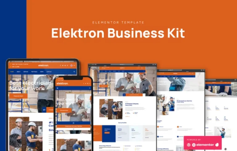Elektron es un kit de plantilla de empresa y negocio eléctrico. Este kit está diseñado para optimizar en Elementor y Hello Theme. Puedes usar este tema libremente para facilitar tu proyecto empresarial. Obtén este kit para darle un aspecto más profesional a tu proyecto.