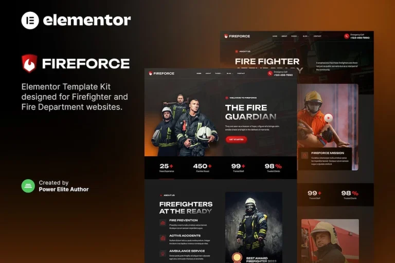 Fireforce es un moderno y limpio Kit de Plantillas de Elementor que es perfecto para aquellos que desean crear un sitio web en WordPress con aspecto profesional para Bomberos, Departamento de Bomberos, Programas de Prevención de Incendios, Bomberos, Plan de Seguridad contra Incendios y otros negocios relacionados. Esta plantilla tiene un diseño profesional con un diseño totalmente receptivo, es compatible con retina y es muy fácil de personalizar porque se utiliza Elementor, ¡por lo que no necesitas una sola línea de código!