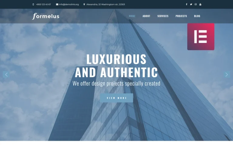Formelus es una solución óptima para presentar servicios arquitectónicos. Este tema tiene un diseño sofisticado y una funcionalidad poderosa. Podrás crear fácil y rápidamente un sitio web profesional dedicado a temas de construcción y diseño. Este tema tiene un diseño sofisticado y una funcionalidad poderosa. Además, cuenta con un completo paquete de plugins de Jet para el constructor de páginas Elementor. Con el plugin JetElements enriquecerás el contenido de tu sitio web con elementos elegantes y aplicarás diferentes configuraciones sin necesidad de conocimientos de codificación. El plugin JetThemeCore te permitirá personalizar encabezados y pies de página según tus necesidades e insertar secciones pre-diseñadas e incluso páginas enteras sobre un tema concreto en las páginas. Podrás organizar el contenido en pestañas y bloques de acordeón utilizando el plugin JetTabs. Proporcionarás a los visitantes información relevante sobre tu empresa, proyectos exitosos y mucho más utilizando el tema de WordPress Formelus. Además, exhibirás imágenes llamativas que muestren tus proyectos realizados. Atraerás a más clientes y aumentarás el reconocimiento de tu estudio arquitectónico con el tema Formelus, receptivo y fácil de usar.