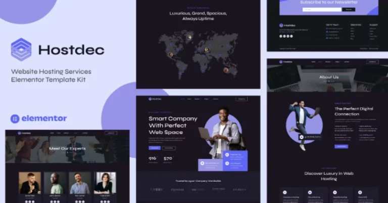 Hostdec – Plantilla de Elementor para servicios de alojamiento web creada especialmente para empresas de hosting web, VPS, hosting dedicado, hosting en la nube, sitios de venta de dominios, SaaS y cualquier tipo de sitios web de empresas tecnológicas. Hostdec tiene un diseño sencillo, moderno y limpio con un diseño 100% receptivo y muy fácil de personalizar, y puede ser utilizado por cualquier persona sin necesidad de entender de codificación.