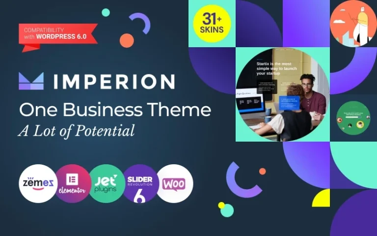 El tema de WordPress para empresas multipropósito Imperion es ordenado y elegante, siendo una excelente opción para diversas compañías o empresas. Este tema es ideal para ofrecer todo tipo de servicios comerciales.