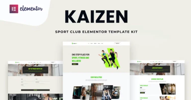 Kaizen – Plantilla de sitio web de club deportivo es un Kit de plantilla de Elementor Pro Moderno y Profesional que es adecuado para el sitio web del club deportivo, sitios web de clubes de bienestar, clubes de natación, clubes de running, clubes de tenis, o cualquier sitio web relacionado con el deporte. Tiene un diseño fresco, moderno y limpio.