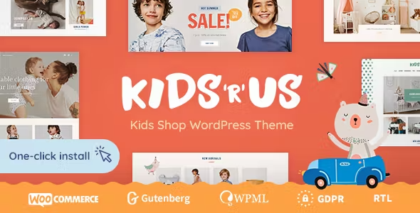 Kids ‘R’ Us es un tema WordPress diseñado exclusivamente para tiendas online del mundo infantil: ropa de bebé, juguetes, productos de maternidad, carriolas, libros y accesorios para niños y recién nacidos. Con WooCommerce integrado, 4 layouts de inicio listos para usar y dos sliders premium incluidos, permite lanzar una tienda infantil visualmente atractiva y completamente funcional sin escribir una sola línea de código.