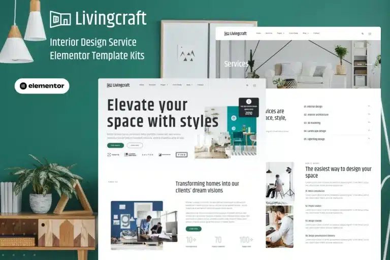 Livingcraft es un conjunto de plantillas Elementor Pro para la creación de sitios web modernos y limpios de diseñadores de interiores, arquitectura, bienes raíces y muebles en WordPress. Esta plantilla tiene un diseño hermoso y único con una disposición 100% receptiva, listo para retina y fácil de personalizar. Cuenta con más de 10 plantillas preconstruidas con un estilo de diseño elegante, simple y moderno. Solo arrastra y suelta, sin necesidad de programación.