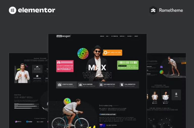 MAX es un kit de sitio completo de Elementor para crear rápidamente un sitio web completo de Elementor Pro para tu creador de contenido, autónomo o sitio web personal. Está optimizado para el tema gratuito Hello Elementor pero se puede utilizar con la mayoría de los temas que admiten el constructor de páginas Elementor. Personaliza fuentes y colores a través de los controles integrados de Estilos de tema de Elementor y carga tus fotos, logotipos y contenido utilizando el constructor visual de arrastrar y soltar.