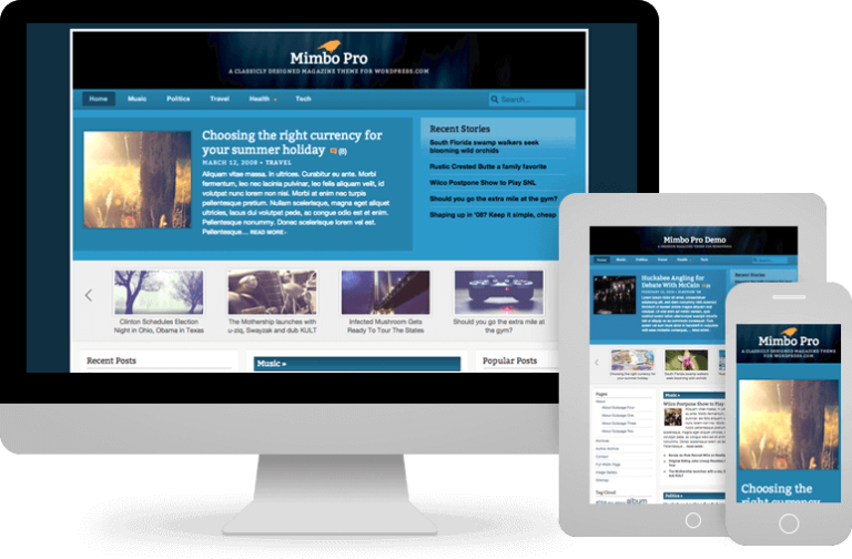Un tema de revista diseñado clásicamente, con barras laterales de widgets flexibles, imágenes personalizadas de encabezado y fondo, y widgets personalizados en el pie de página.