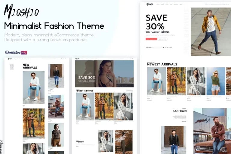 Mioshio es una plantilla de comercio electrónico de moda moderna y limpia creada con Elementor Pro. Ofrece 2 versiones diferentes de estilo en una sola plantilla, muy fácil de cambiar entre ambas.
