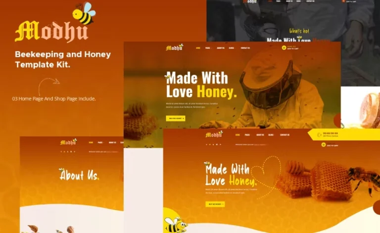 Modhu es un Kit de Plantillas de Elementor diseñado para el sitio web de producción de miel, técnicas de apicultura y alimentos orgánicos. Tiene un diseño especial para la introducción de productos de miel en el sitio web, la tienda vende productos de miel. Después de importar la demo, solo necesitas cambiar algunas informaciones en la plantilla para tener un sitio web completo. Está optimizado para SEO muy bien. Si estás buscando un sitio web de miel en WordPress, o una tienda de miel, esta es la mejor elección.