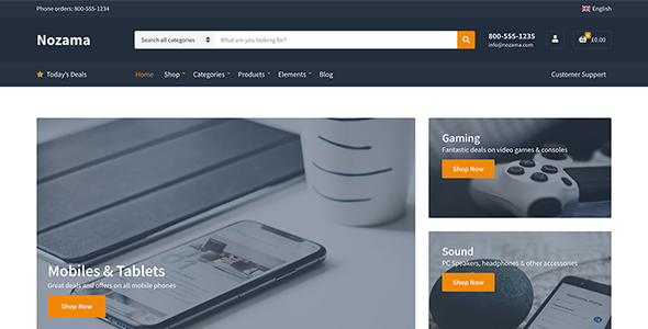 Características del tema Nozama WordPress Theme
