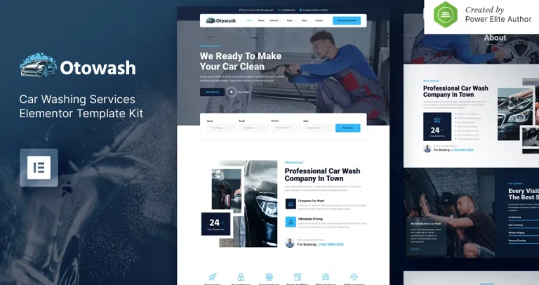 Otowash es un moderno Kit de Plantillas de Elementor que es un Kit de Plantillas de Elementor para crear rápidamente sitios web para tu negocio de lavado de autos o detallado de autos utilizando el plugin Elementor Page Builder para WordPress. Este kit ha sido optimizado para ser utilizado con el tema gratuito Hello Elementor, pero puede ser utilizado con la mayoría de los temas que soportan Elementor. Esta plantilla tiene un diseño profesional con un diseño 100% responsive, está lista para retina y es muy fácil de personalizar porque se utiliza Elementor, ¡así que no necesitas una sola línea de código!