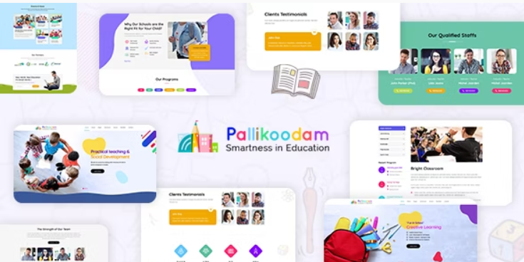 Pallikoodam es un tema de WordPress educativo basado en Elementor. Es el mejor tema de WordPress para escuelas más adecuado para centros de capacitación, academias, escuelas, preescolares, colegios, universidades, instructores en línea y perfiles de profesores en línea y portafolios, escuelas de manejo, escuelas de música, escuelas de dibujo y arte, escuelas de idiomas y aprendizaje en línea, cualquier escuela cultural y escuela de deportes.
