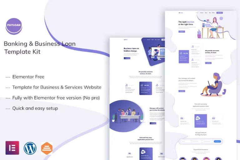 El kit de plantillas Payloan es moderno y limpio, diseñado para tarjetas de crédito, pagos, servicios financieros, préstamos, aplicaciones, negocios o cualquier tipo de persona o negocio que desee mostrar su trabajo, servicios y profesionalismo. Este kit ha sido optimizado para su uso con el tema gratuito Hello Elementor, pero puede ser utilizado con la mayoría de los temas que admiten Elementor.