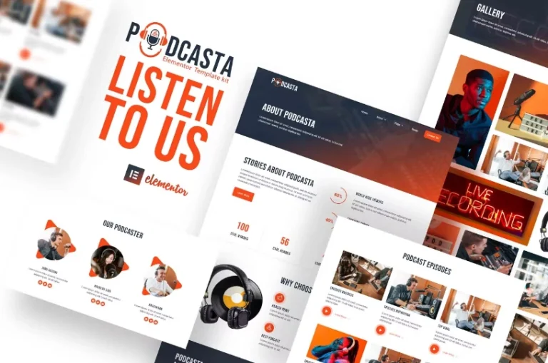 Podcasta es un Kit de Plantillas para Elementor que te permite crear websites rápidamente para tu podcast o stream en internet usando el plugin Elementor Page Builder para WordPress. Este kit ha sido optimizado para su uso con el tema gratuito Hello Elementor, pero puede ser utilizado con la mayoría de los temas que soportan Elementor. Esto no es un tema de WordPress. Los Kits de Plantillas contienen contenido de página para el constructor de páginas de Elementor. Puedes alojar tus propios archivos o enlazar a cualquier proveedor de servicios de streaming.