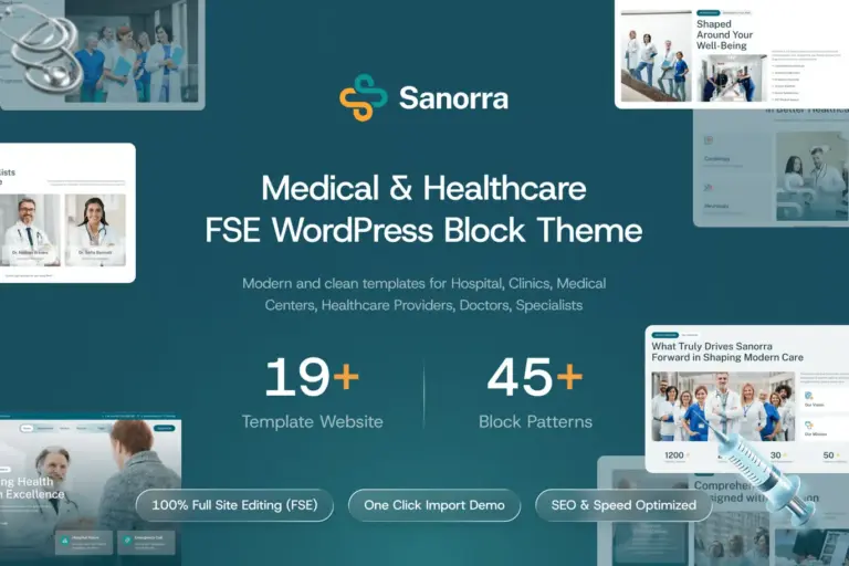 En el entorno médico actual, la confianza del paciente comienza en la pantalla. Sanorra – Medical & Healthcare FSE WP Block Theme es una solución de vanguardia diseñada específicamente para instituciones sanitarias, consultorios especializados y centros de bienestar que buscan una presencia digital impecable. Al utilizar la tecnología Full Site Editing (FSE), este tema permite que los profesionales de la salud gestionen su portal web con una facilidad sin precedentes, eliminando la dependencia de configuraciones técnicas complejas.