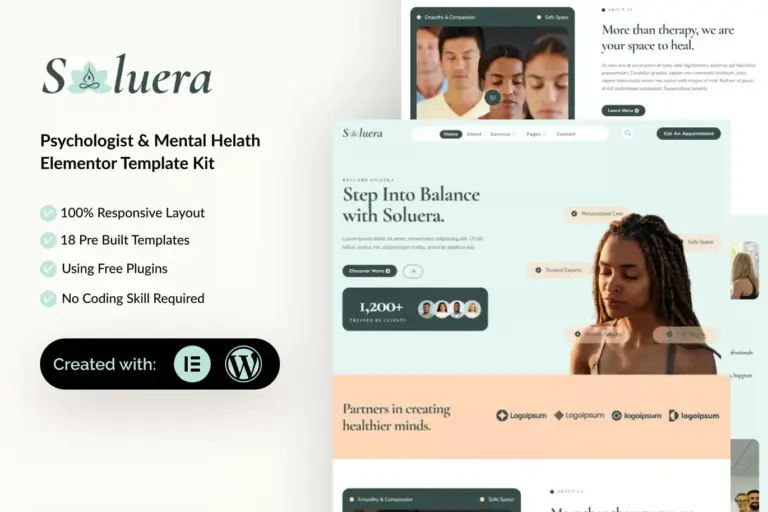 Soluera – Psychologist & Mental Health Elementor Template Kit
