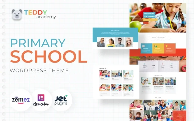 ¿Necesitas configurar un sitio web asombroso para promocionar tu escuela primaria en línea? ¡Tenemos la solución para ti! Con nuestra Plantilla de WordPress para Escuela Primaria, ¡obtendrás el diseño más receptivo y atractivo en el negocio! Con el tema de Teddy Academy, podrás administrar y personalizar tu contenido con el poderoso constructor de páginas Elementor de arrastrar y soltar. Permite configurar la información sin necesidad de habilidades de codificación. El tema también incluye el complemento JetElements para Elementor, que agrega bloques personalizados variados al diseño de página de tu sitio web, con módulos adicionales no incluidos en el paquete estándar de elementos del constructor de páginas Elementor. ¡Puedes encontrar el complemento JetMenu y crear tus propios Mega menús personalizados en pocos clics! ¡Planifica tu horario en línea con el complemento del Calendario de Eventos y comparte los comentarios de tus clientes con el plugin Jet. ¡Encuentra aún más funcionalidades en el Tema de WordPress para Escuela Primaria Teddy Academy!