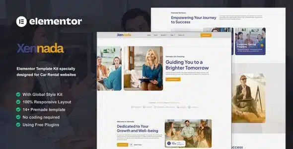 Xennada Life Coach Elementor Kit es una solución completa y profesional diseñada específicamente para coaches de vida, motivadores, terapeutas y entrenadores personales que buscan establecer una presencia en línea impactante. Este kit de plantillas para Elementor simplifica el proceso de creación de sitios web al proporcionar diseños modernos, intuitivos y personalizables que reflejan los valores y servicios de los profesionales del desarrollo personal. Con Xennada Life Coach Elementor Kit, puedes crear un sitio web atractivo y funcional en cuestión de minutos, sin necesidad de conocimientos avanzados de diseño o programación. ¿Qué es Xennada Life Coach Elementor Kit? Xennada Life Coach Elementor Kit es un conjunto de plantillas prediseñadas para el creador de páginas Elementor en WordPress. Este kit está enfocado en satisfacer las necesidades de los coaches de vida y profesionales que desean conectar con su audiencia a través de una presencia digital sólida y persuasiva. Las plantillas incluidas están diseñadas con una estética moderna y profesional, y están optimizadas para transmitir mensajes inspiradores y captar la atención de potenciales clientes. Desde páginas de inicio impactantes hasta secciones dedicadas a servicios, testimonios y blogs, Xennada Life Coach Elementor Kit te brinda todo lo necesario para construir un sitio web efectivo y centrado en tus objetivos.