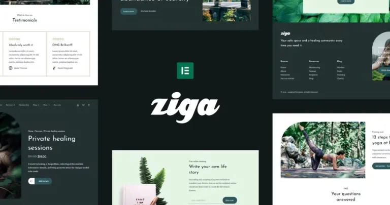 Ziga es un Kit de plantillas de Elementor para crear de forma rápida y sencilla un sitio web para cada sanador, trabajador de la luz, chamán, hipnotista, practicante de reiki, coach de vida, consejero, terapeuta y cualquier tipo de profesional holístico en el negocio de la sanación y el bienestar.